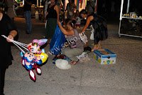 Κόσμος όρμισε και έκανε πλιάτσικο στα λαθραία εμπορεύματα των μικροπωλητών που τα εγκατέλειπαν για να μην τους συλλάβουν οι αστυνομικοί . Δημοτικοί αστυνομικοί μουτζούρωναν τα λαθραία με μπογιά σπρέι αλλά αυτό δεν πτοούσε το κόσμο