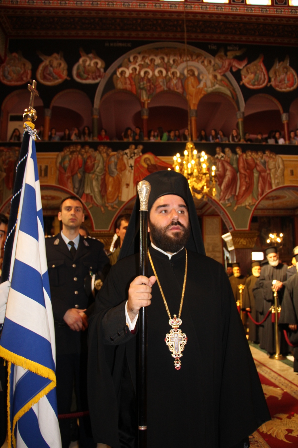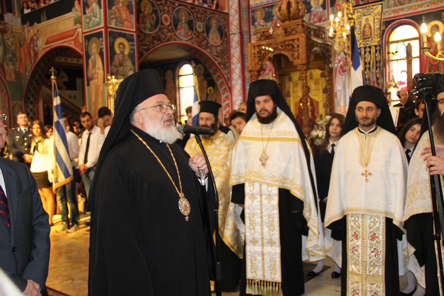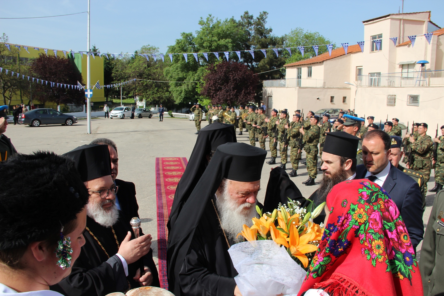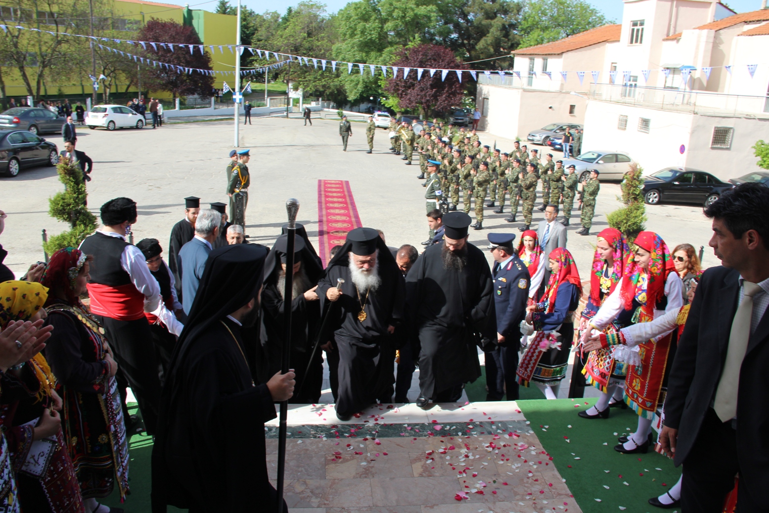Κάτω από τη σκιά της 90τ.μ. γαλανόλευκης που στολίζει το κωδωνοστάσιο του Καθεδρικού Ναού, οι αρχές, ο ιερός κλήρος, εκπρόσωποι των φορέων, οι μαθητές των σχολείων με τις σημαίες τους, οι σπουδαστές της Σχολής Δοκίμων Αστυφυλάκων Διδυμοτείχου, τα μέλη των πολιτιστικών συλλόγων με θρακιώτικες ενδυμασίες και πλήθος κόσμου με τις προσήκουσες τιμές υποδέχθηκαν τον Προκαθήμενο της Εκκλησίας μας με αισθήματα συγκινήσεως και ενθουσιασμού.