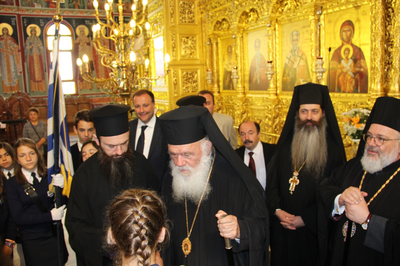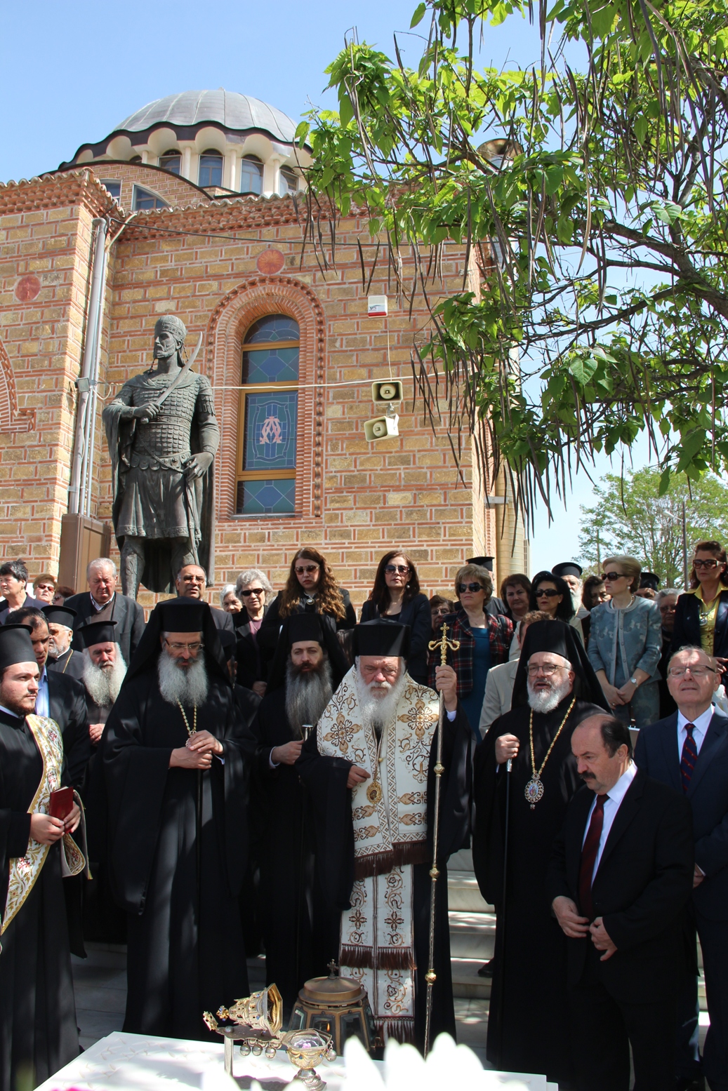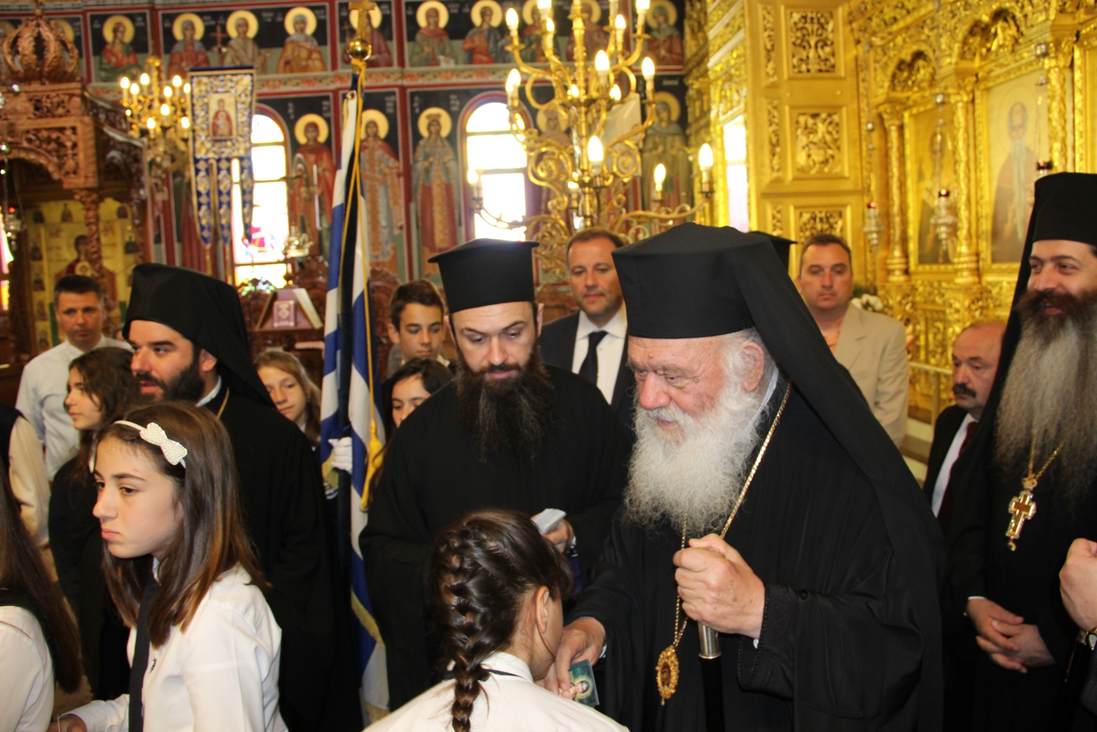 Κάτω από τη σκιά της 90τ.μ. γαλανόλευκης που στολίζει το κωδωνοστάσιο του Καθεδρικού Ναού, οι αρχές, ο ιερός κλήρος, εκπρόσωποι των φορέων, οι μαθητές των σχολείων με τις σημαίες τους, οι σπουδαστές της Σχολής Δοκίμων Αστυφυλάκων Διδυμοτείχου, τα μέλη των πολιτιστικών συλλόγων με θρακιώτικες ενδυμασίες και πλήθος κόσμου με τις προσήκουσες τιμές υποδέχθηκαν τον Προκαθήμενο της Εκκλησίας μας με αισθήματα συγκινήσεως και ενθουσιασμού.