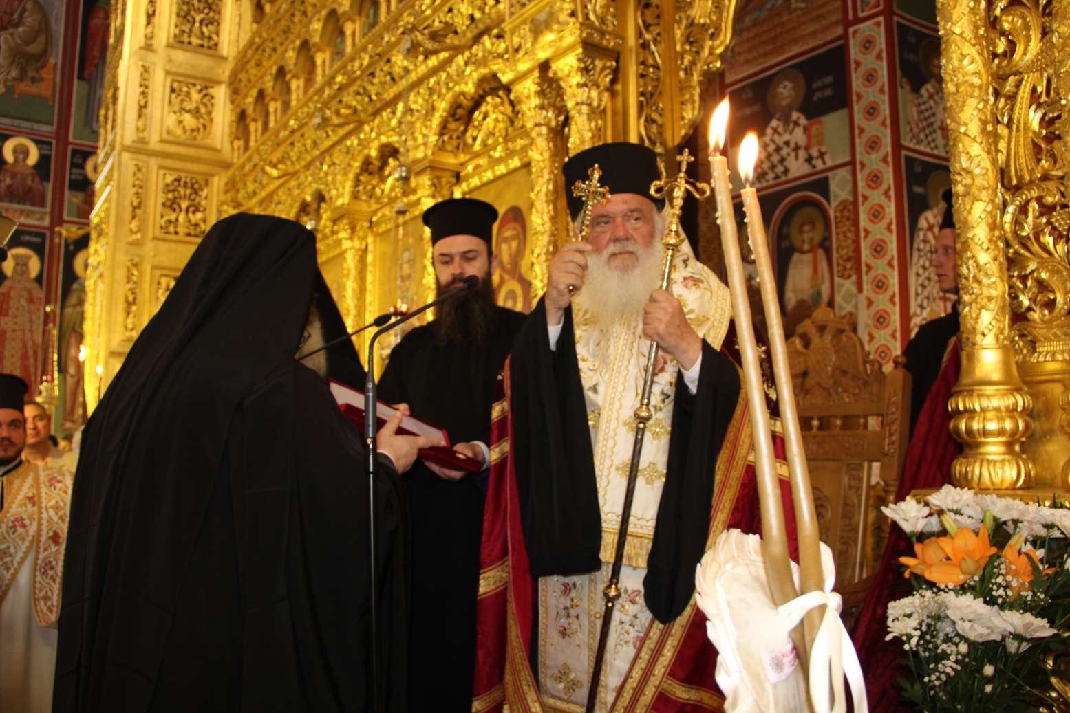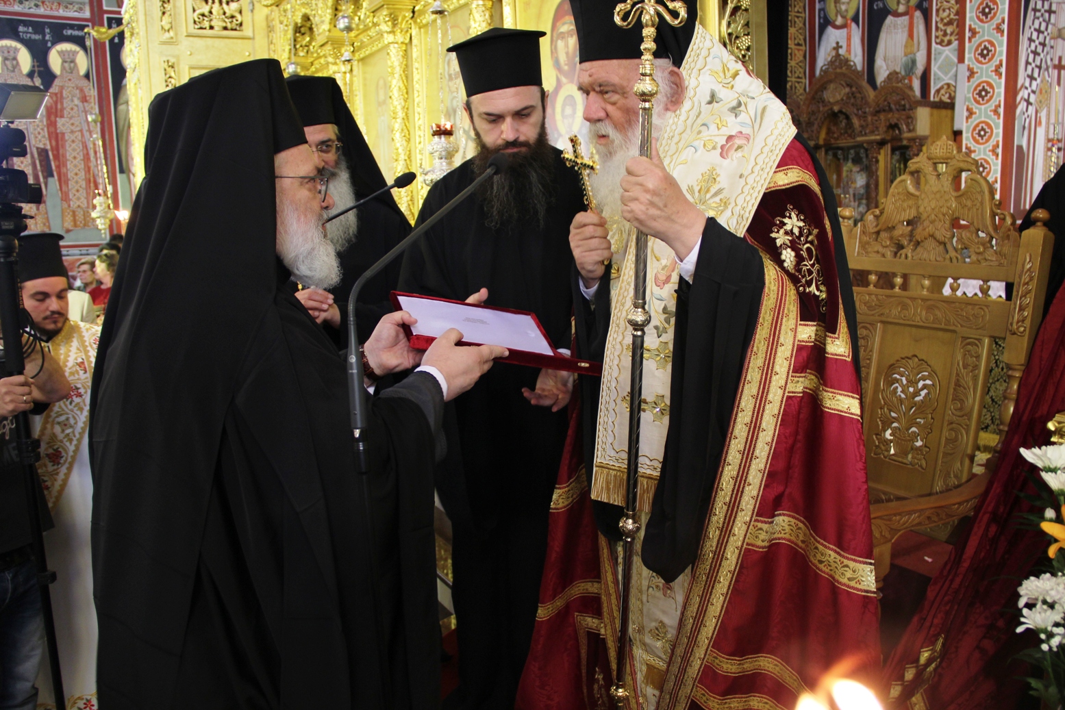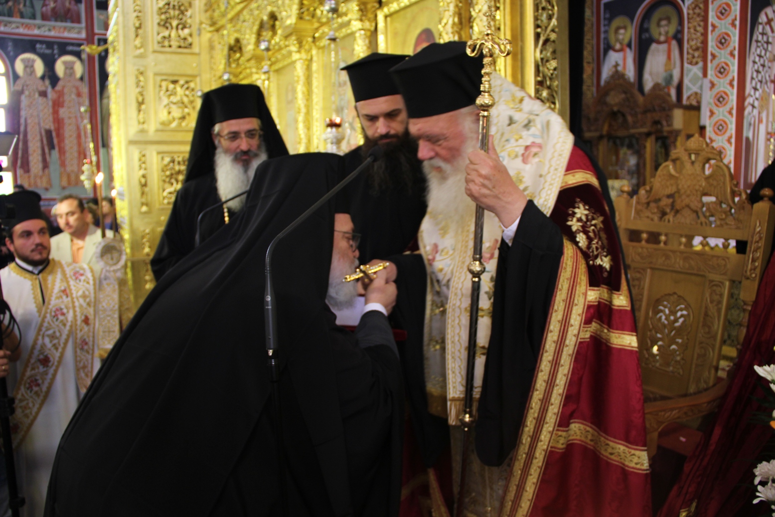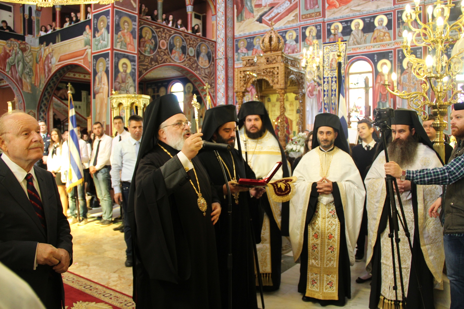 Κάτω από τη σκιά της 90τ.μ. γαλανόλευκης που στολίζει το κωδωνοστάσιο του Καθεδρικού Ναού, οι αρχές, ο ιερός κλήρος, εκπρόσωποι των φορέων, οι μαθητές των σχολείων με τις σημαίες τους, οι σπουδαστές της Σχολής Δοκίμων Αστυφυλάκων Διδυμοτείχου, τα μέλη των πολιτιστικών συλλόγων με θρακιώτικες ενδυμασίες και πλήθος κόσμου με τις προσήκουσες τιμές υποδέχθηκαν τον Προκαθήμενο της Εκκλησίας μας με αισθήματα συγκινήσεως και ενθουσιασμού.