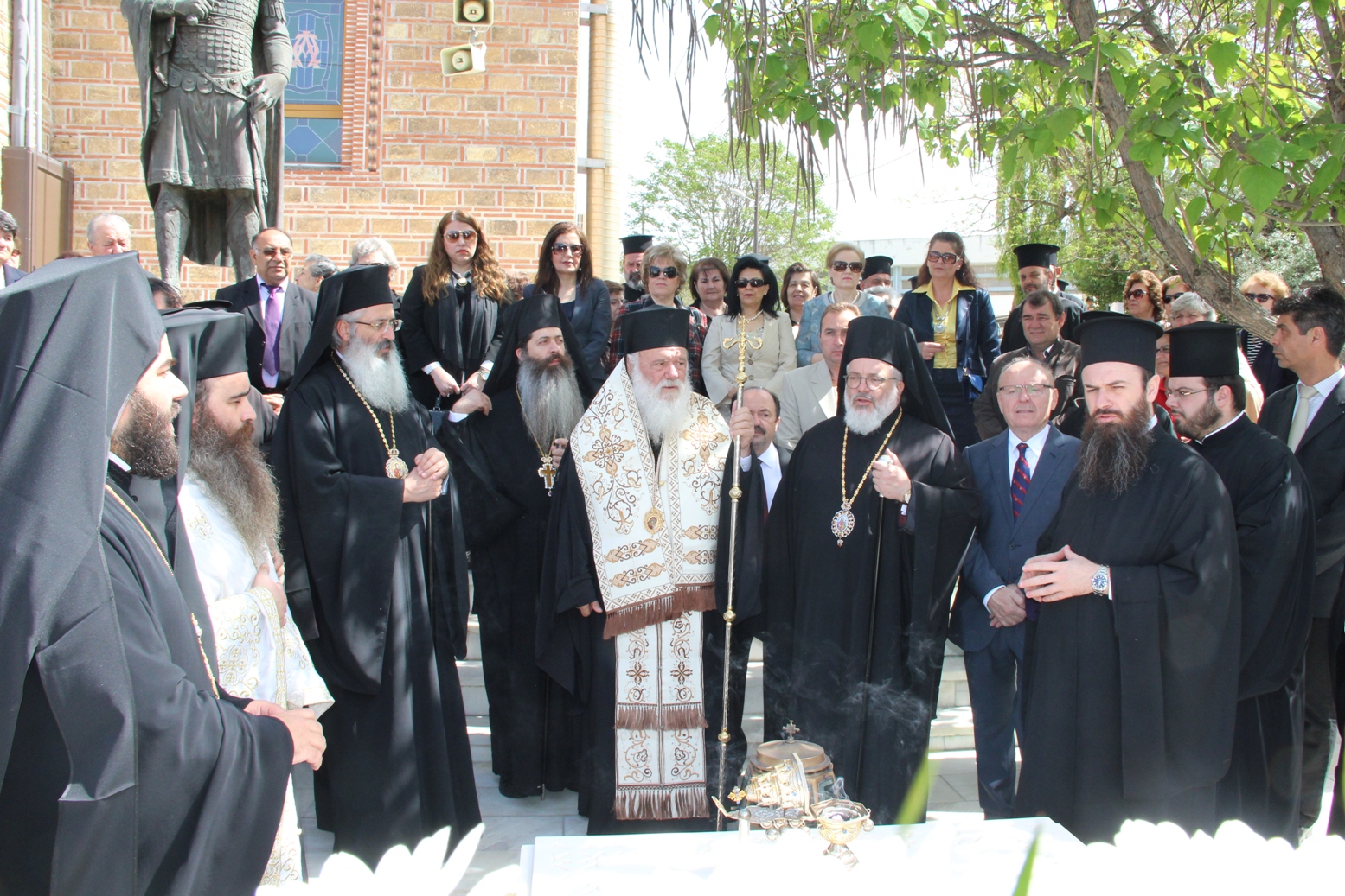 Εξερχόμενος του Ναού ο Μακαριώτατος ετέλεσε Τρισάγιο στον τάφο του Κτίτορος του Ναού μακαριστού Μητροπολίτου κυρού Νικηφόρου (+2009).